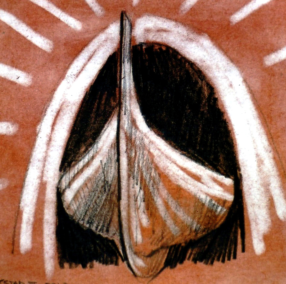 Red conté and charcoal on paper