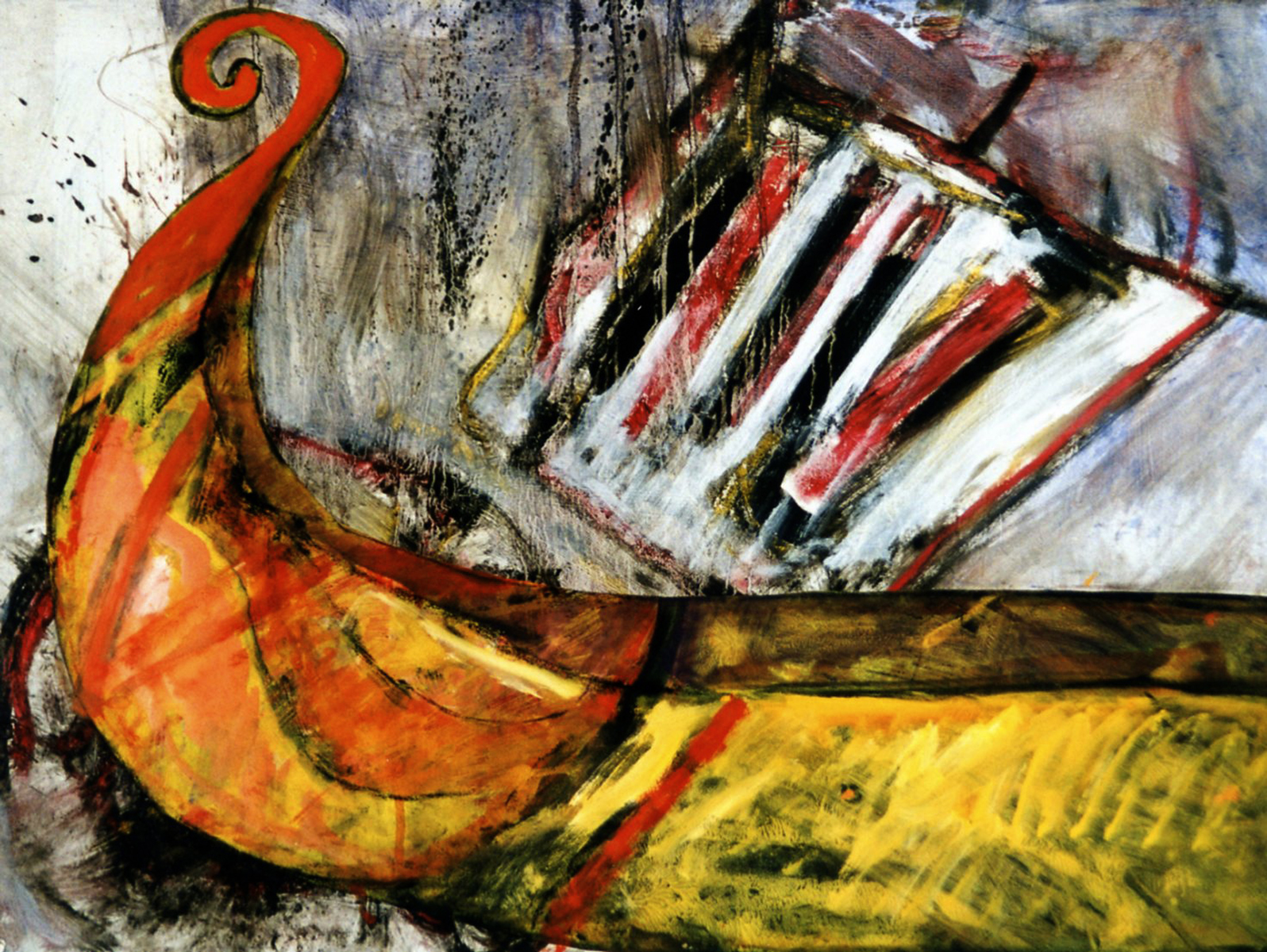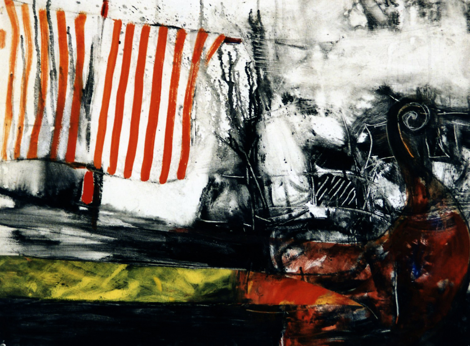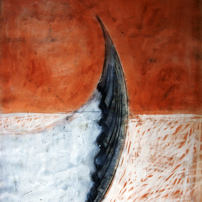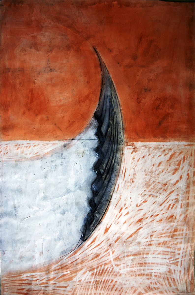 Red conté and oil stick on paper