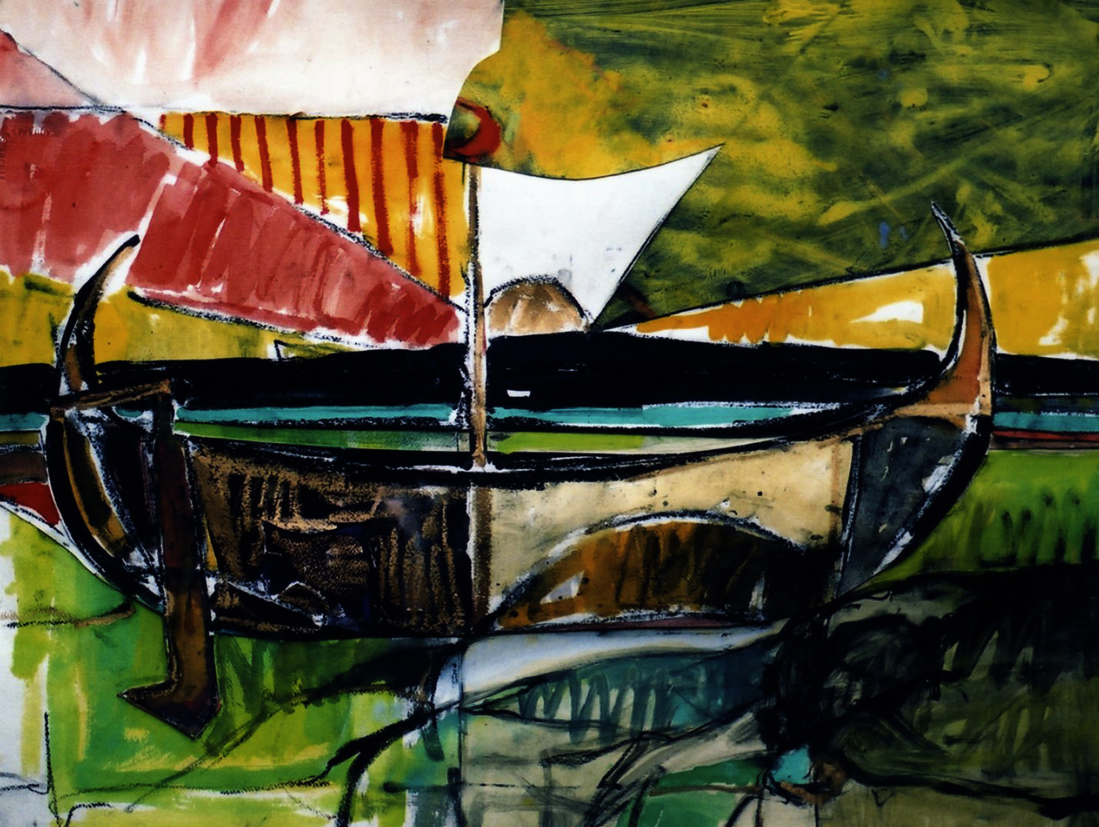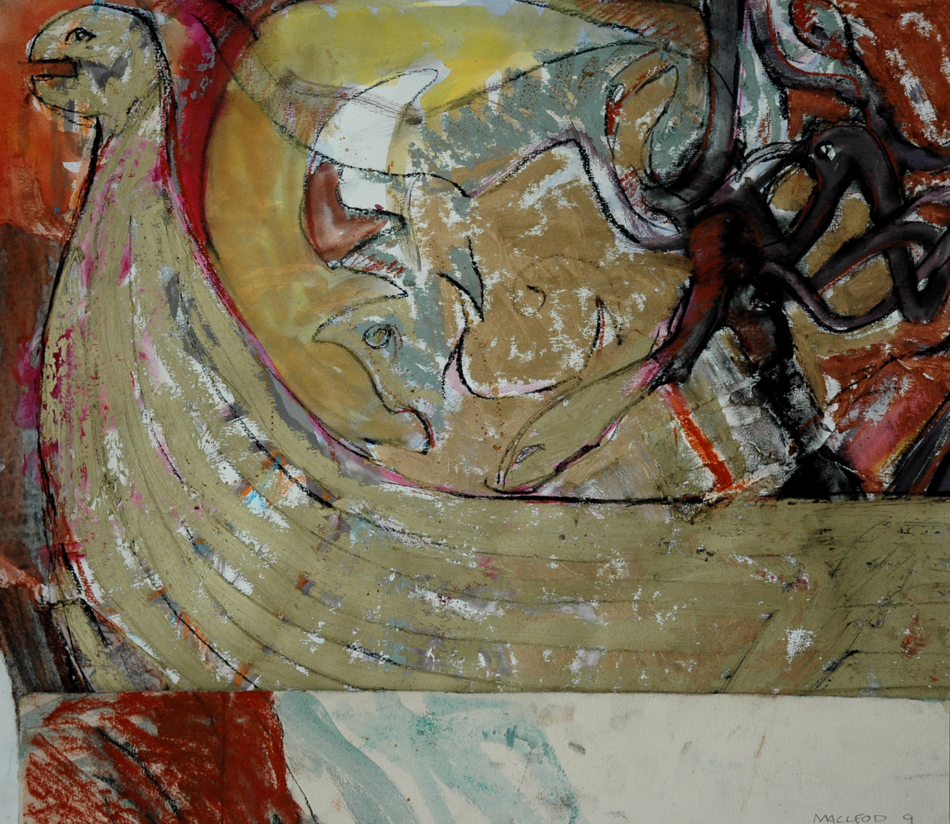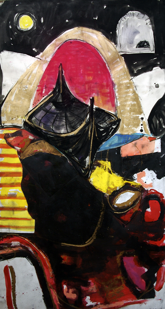 Gouache, oil stick, charcoal and graphite on paper