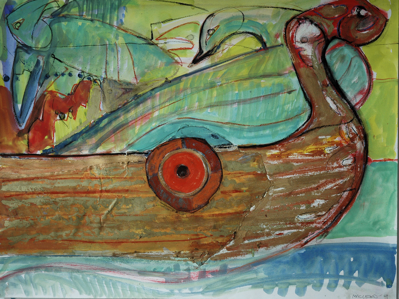 Water coloir, oil stick and graphite on paper