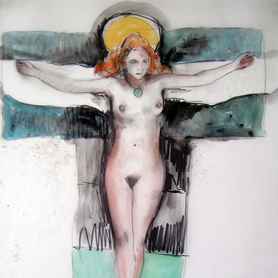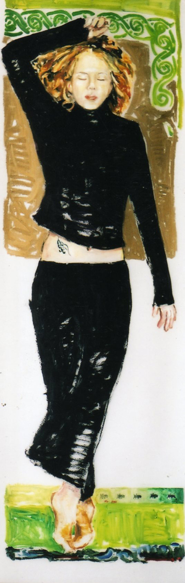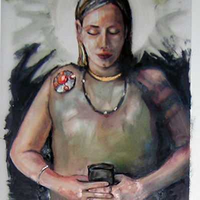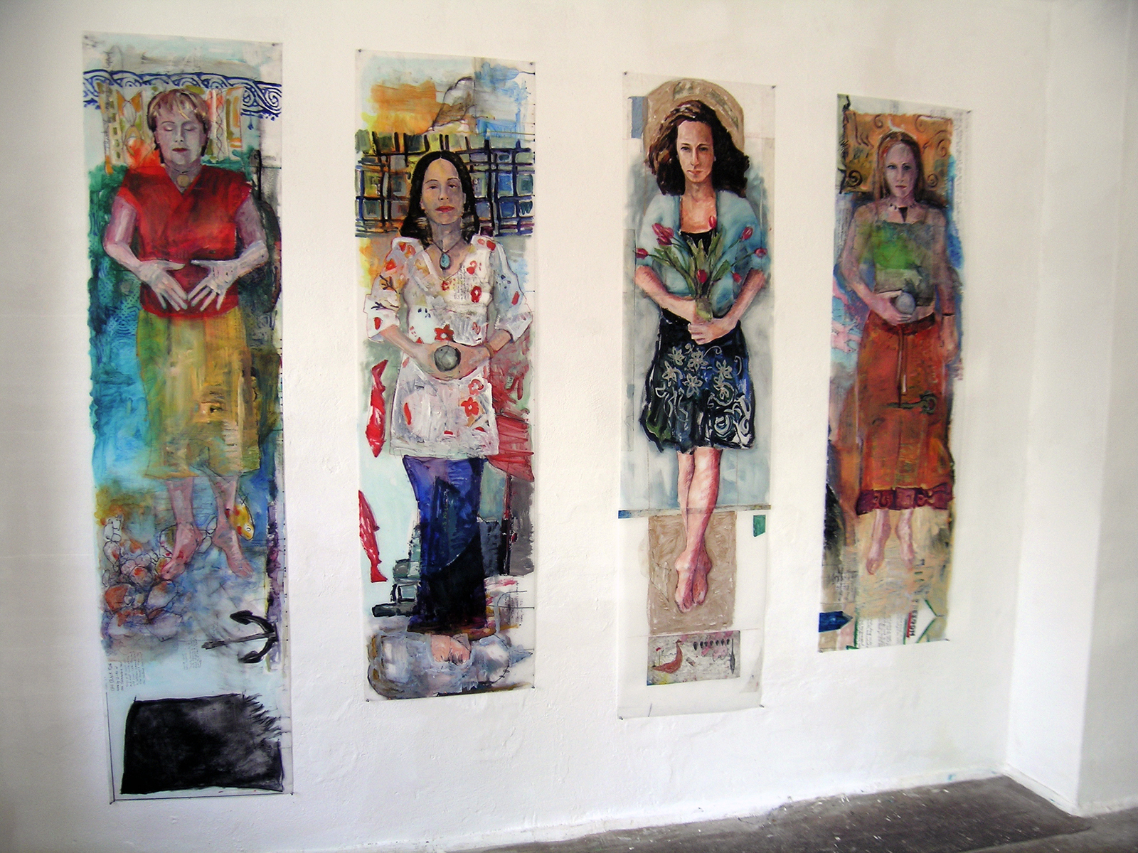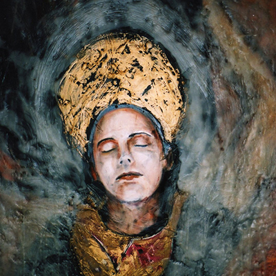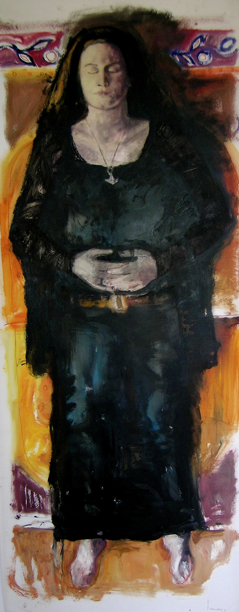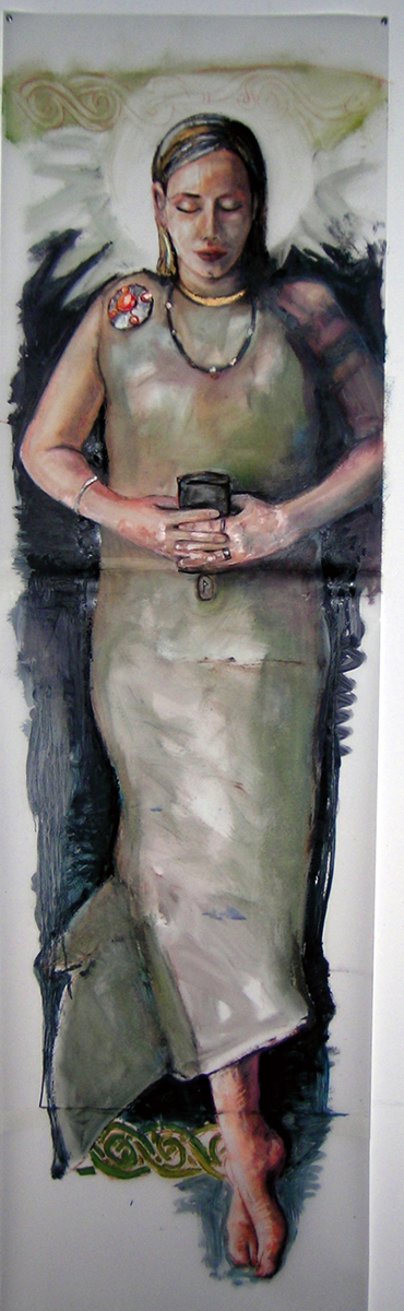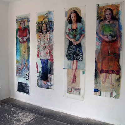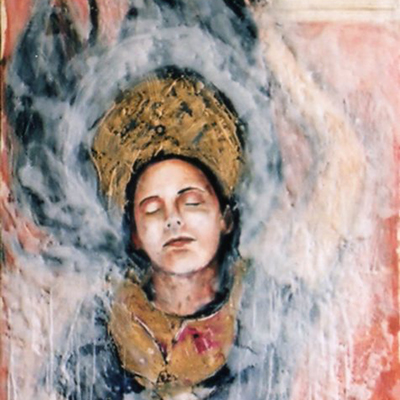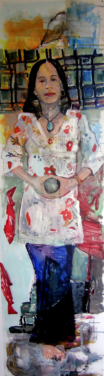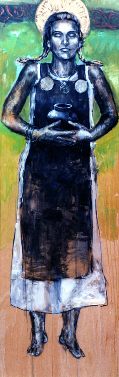 Gouache, acrylic, charcoal, oil stick, wax, paper, Mylar on wood
