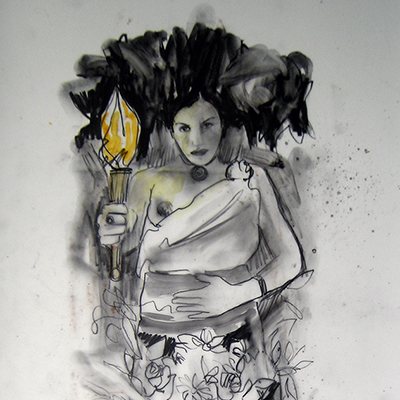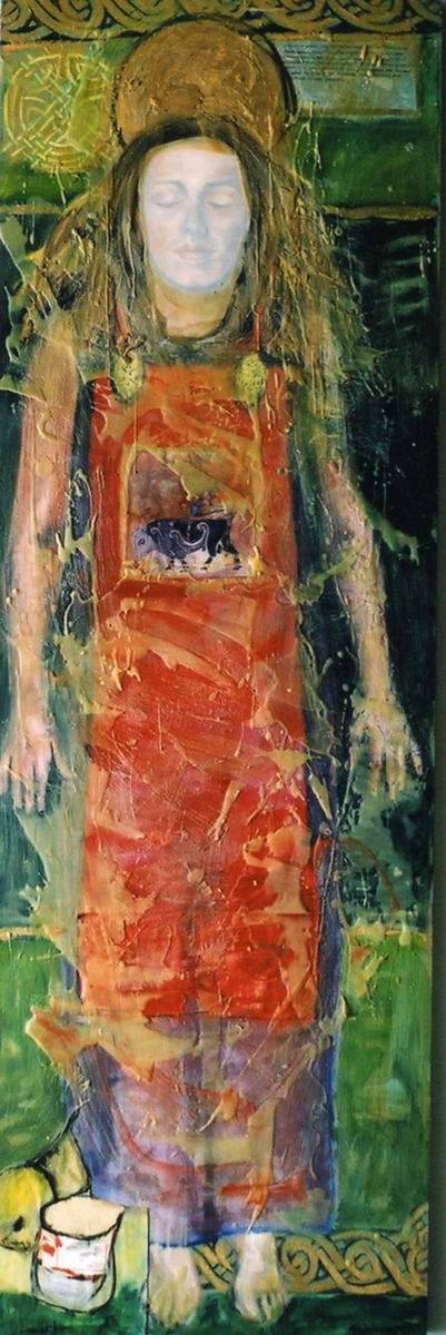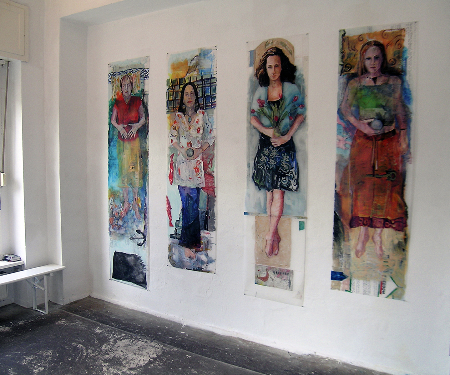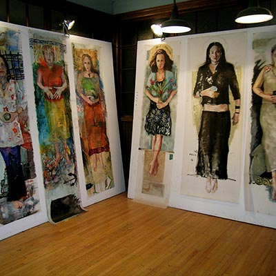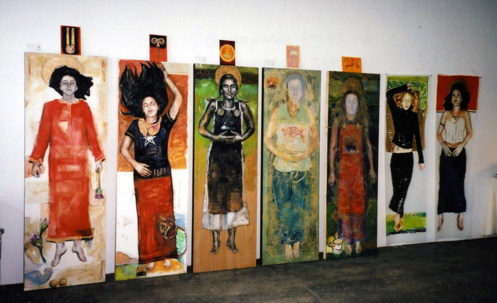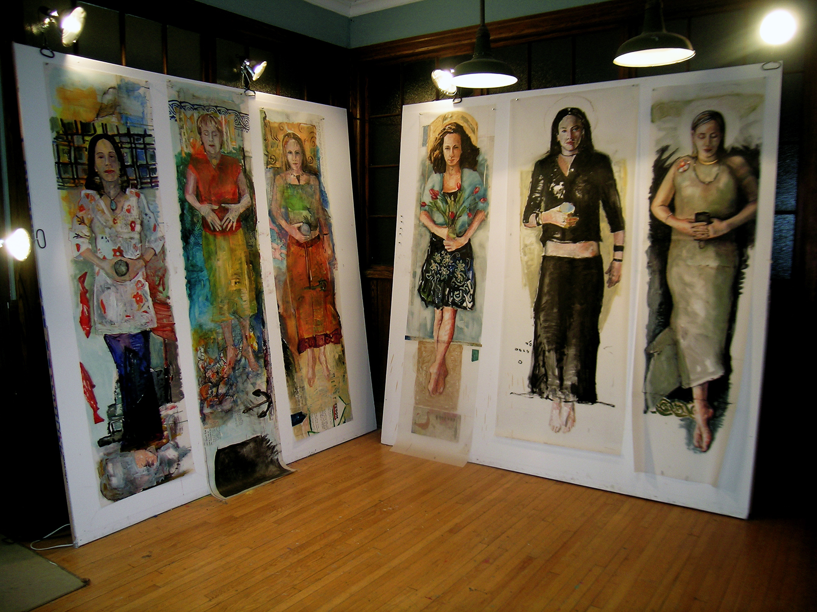 Gouache, acrylic, charcoal, oil stick, wax, paper, Mylar on wood